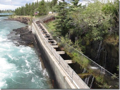 The fish ladder, that helps salmon get past the dam.
